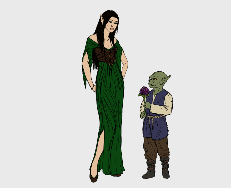 Guts’s right hand goblin Red-spit and the elf enchantress he had a crush on